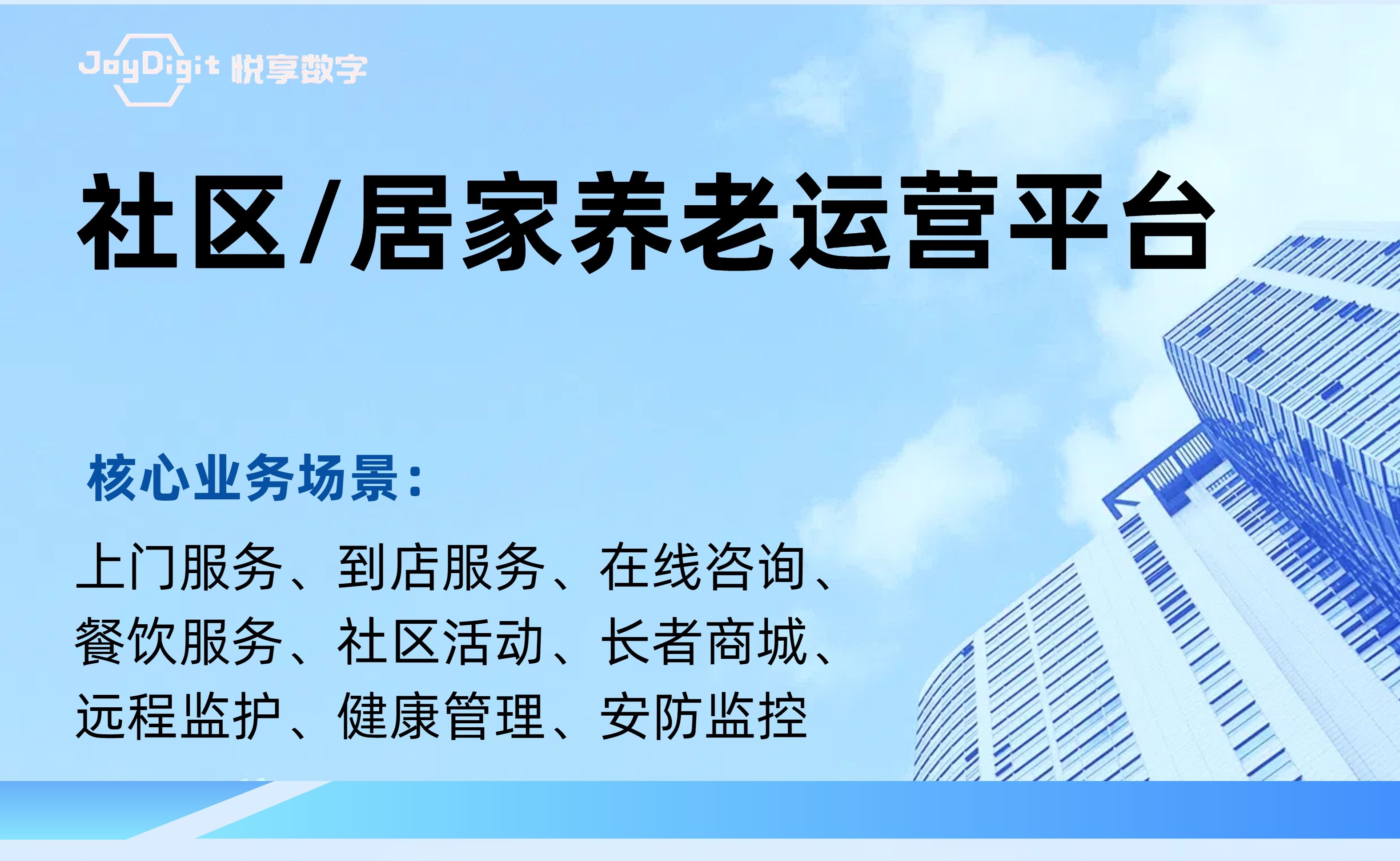 北京悅享數(shù)字科技有限公司(JoyDigit?,簡(jiǎn)稱(chēng)悅享數(shù)字?)作為養(yǎng)老行業(yè)數(shù)字化轉(zhuǎn)型的引領(lǐng)者,以“數(shù)字驅(qū)動(dòng)健康?,智慧賦能養(yǎng)老?”為愿景,以iSpeed作為養(yǎng)老行業(yè)數(shù)字化轉(zhuǎn)型的標(biāo)準(zhǔn),通過(guò)融合大數(shù)據(jù)、人工智能、物聯(lián)網(wǎng)、區(qū)塊鏈和移動(dòng)互聯(lián)等創(chuàng)新技術(shù),打造了領(lǐng)先的數(shù)字化養(yǎng)老解決方案-悅享養(yǎng)老數(shù)字化平臺(tái)(JoyDigit NexSight Platform),端到端覆蓋了數(shù)字化渠道與銷(xiāo)售、業(yè)務(wù)流程標(biāo)準(zhǔn)化與智...